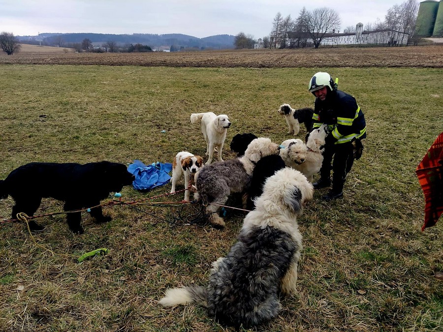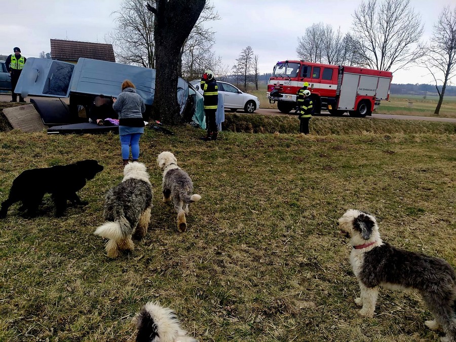 STRAKONICKO – Jihočeští hasiči zasahovali o víkendu u ne úplně běžné dopravní nehody u Bělčic na Strakonicku. Řidička dodávky skončila s automobilem v příkopu. Žena ve vozidle převážela čtrnáct nijak nezajištěných psů. Ti se rozutekli po okolí. Jeden z nich utrpěl zranění a následně bohužel zemřel.