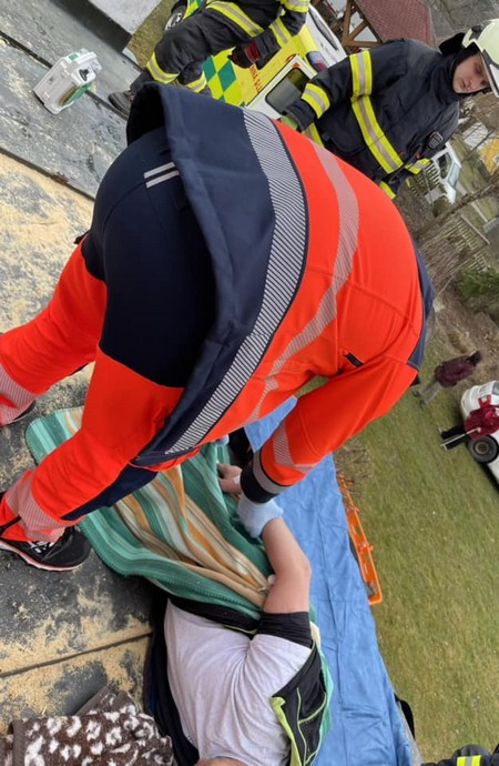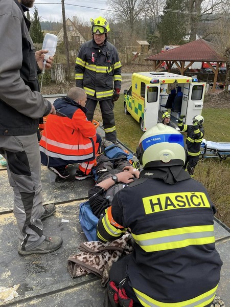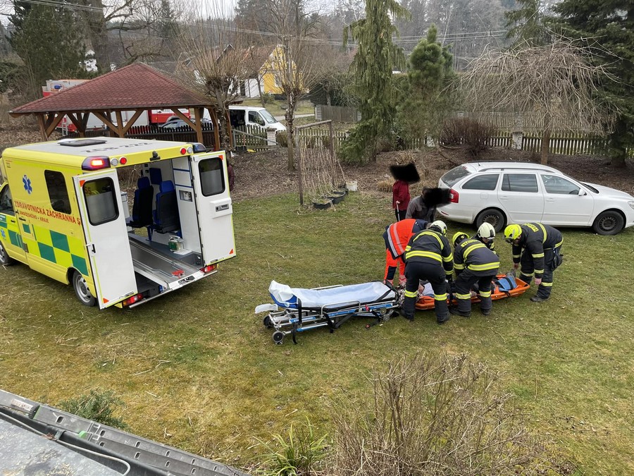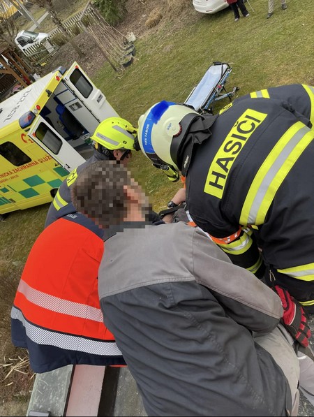 TÁBORSKO – Náročný zásah v těžko přístupném místě mají za sebou záchranáři na jihu Čech. Vyjížděli totiž k muži, který při práci na střeše spadl ze žebříku na kluzkou střechu garáže. Pádem si způsobil otevřenou zlomeninu dolní končetiny. Jelikož transport zraněného muže byl možný pouze po žebříku, museli přijet na pomoc hasiči.