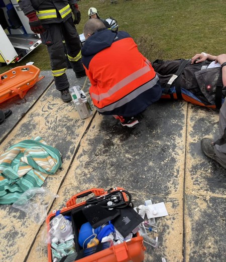 Jak informovala mluvčí jihočeské záchranné služby Zuzana Fajtlová, nehoda se stala na Táborsku. „Muž při práci na střeše domu spadl ze žebříku na kluzkou střechu garáže, kam za ním záchranáři museli vylézt, a způsobil si otevřenou zlomeninu dolní končetiny. Záchranáři zraněnému zajistili žilní vstup, aby mu mohli poskytnout infúzní terapii a analgetika, dále jej imobilizovali vakuovou matrací a ošetřili poraněnou končetinu,“ popsala mluvčí záchranářů.