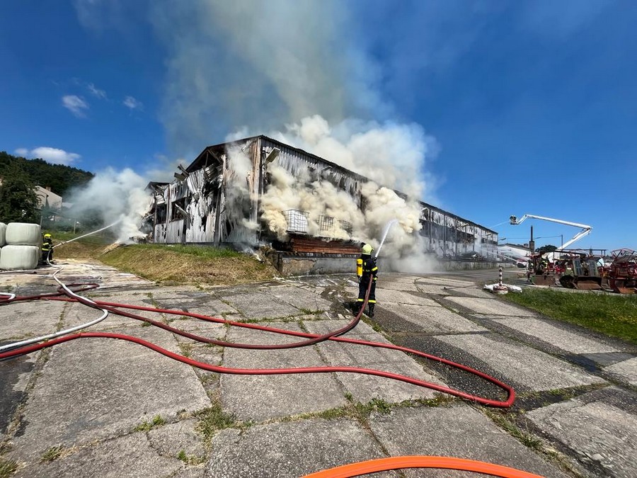 PRACHATICKO – Hasiči od dopoledních hodin bojují s požárem skladu ve Lhenicích na Prachaticku. Uvnitř je uskladněno sto padesát balíků slámy. U jedné z hal se propadla střecha. Na místě zasahuje jedenáct jednotek hasičů a byl vyhlášen druhý stupeň požárního poplachu.