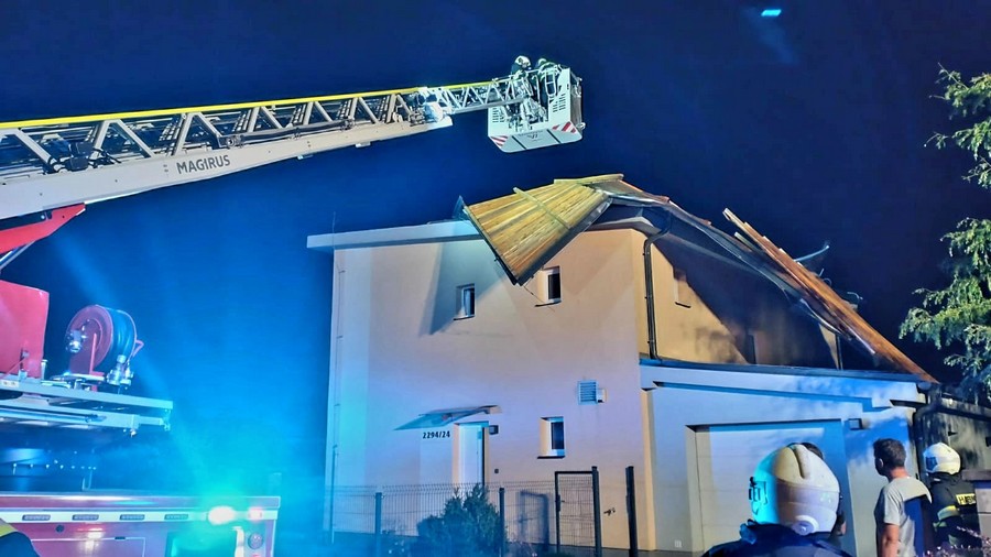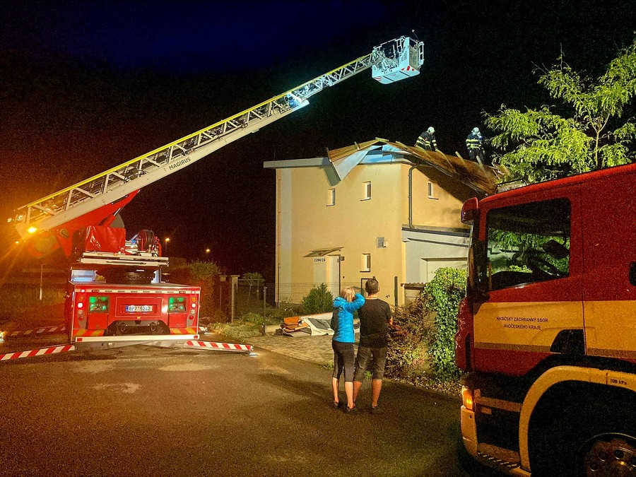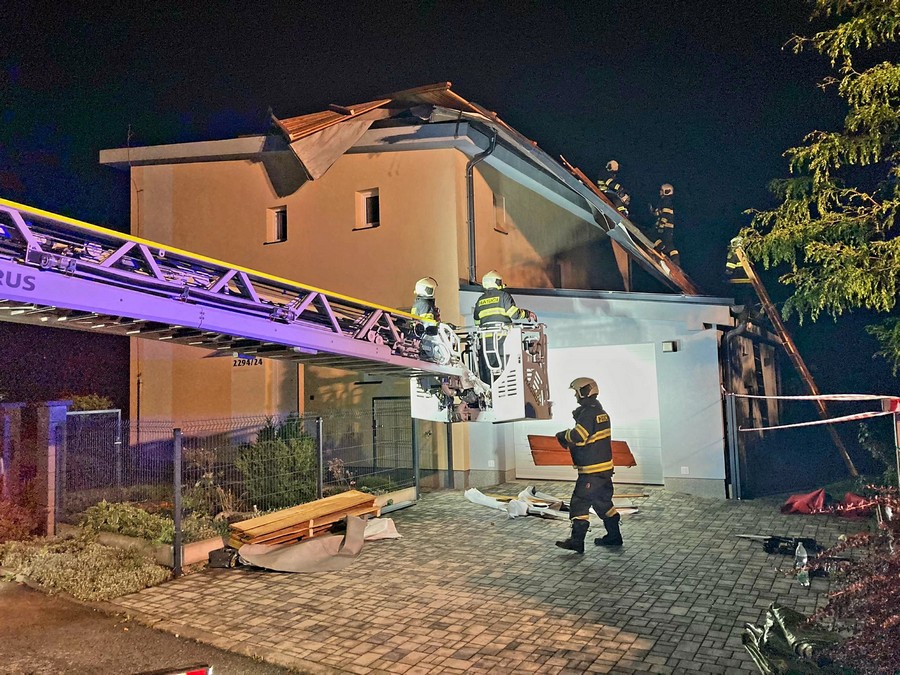 V Českých Budějovicích ve Strakonické ulici vítr vzal část střechy. „Uvolněné časti jsme postupně odstranili a střechu pak zaplachtovali,“ uvedla mluvčí hasičů.