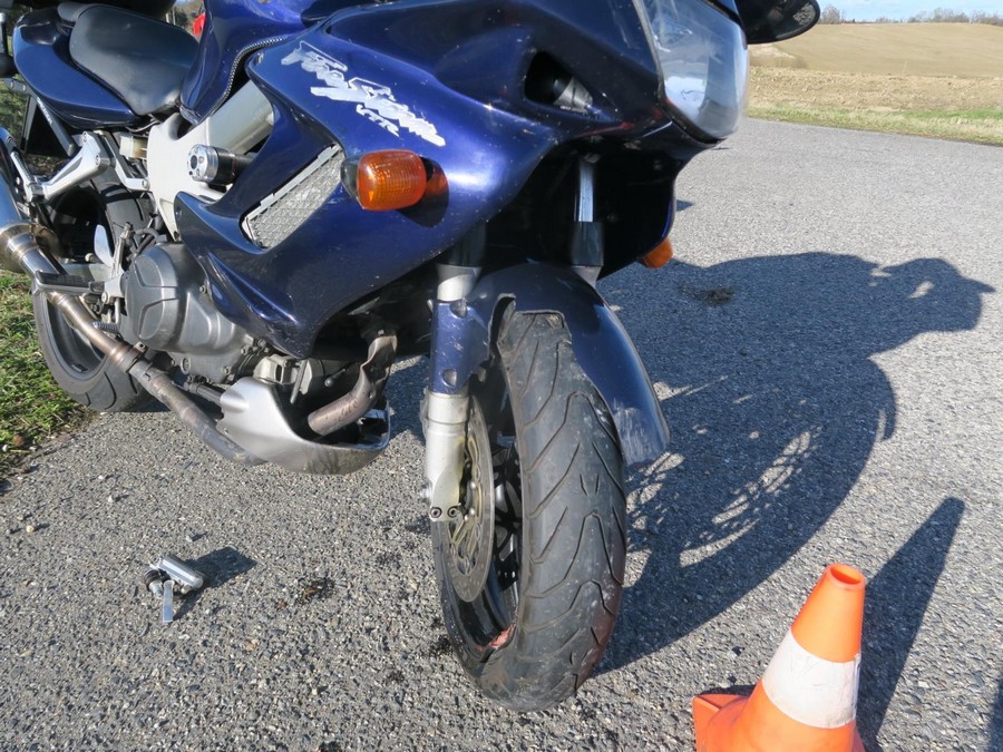 Druhou nehodu vyšetřovali stejní policisté po druhé hodině odpolední na trase mezi obcemi Dolní Novosedly a Záhoří. „Řidič motorky tovární značky Honda pravděpodobně nepřizpůsobil rychlost jízdy svým schopnostem a jiným okolnostem a došlo ke střetu jeho přední částí do zavazadlového prostoru osobního automobilu Peugeot 5008, jehož řidič zpomalil z důvodu před ním jedoucího vozidla, které odbočovalo vlevo mimo komunikaci,“ uvedl Bajcura.