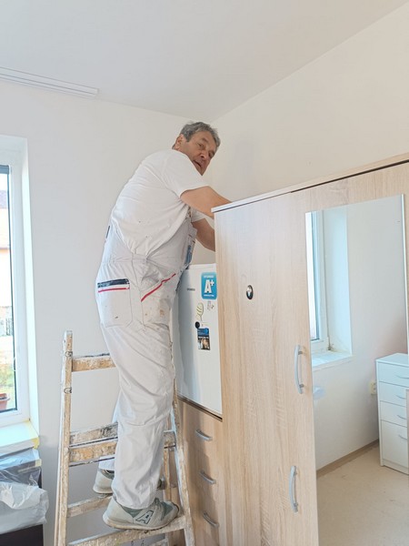 Celkem dvanáct malířů včele s výkonným ředitelem panem Pavlem Žatečkou si nejen hravě poradilo s výmalbou šesti set čtverečních metrů, ale současně byli také milou návštěvou pro obyvatele chráněného bydlení. Ti pro ně jako malé poděkování připravili skvělé občerstvení. Podívat se na ně přišel také starosta Města Jindřichův Hradec Michal Kozár.