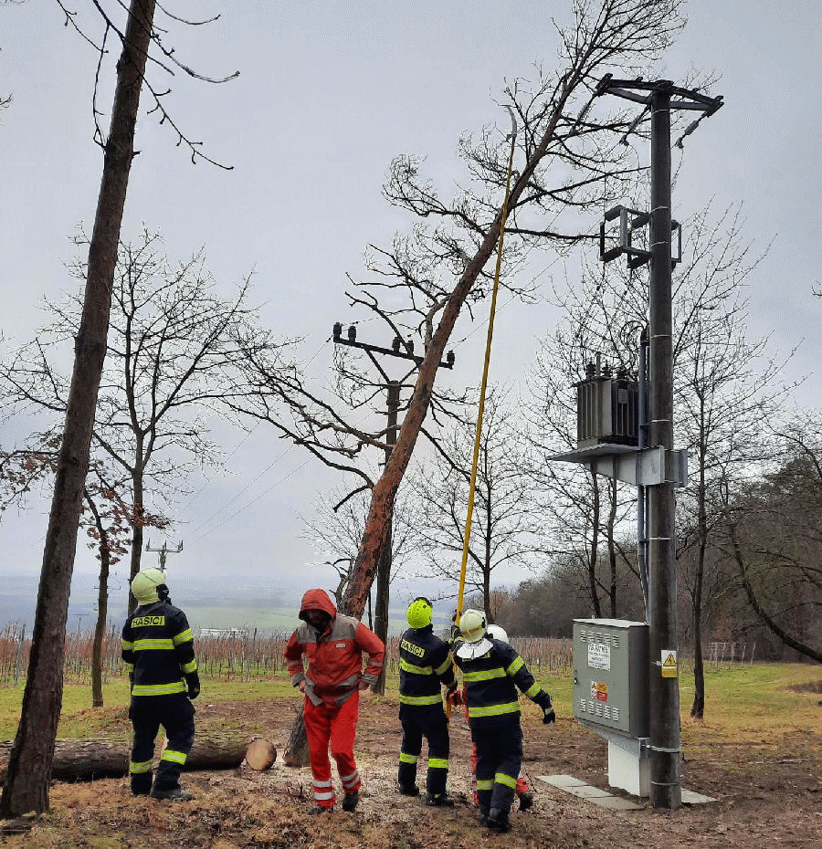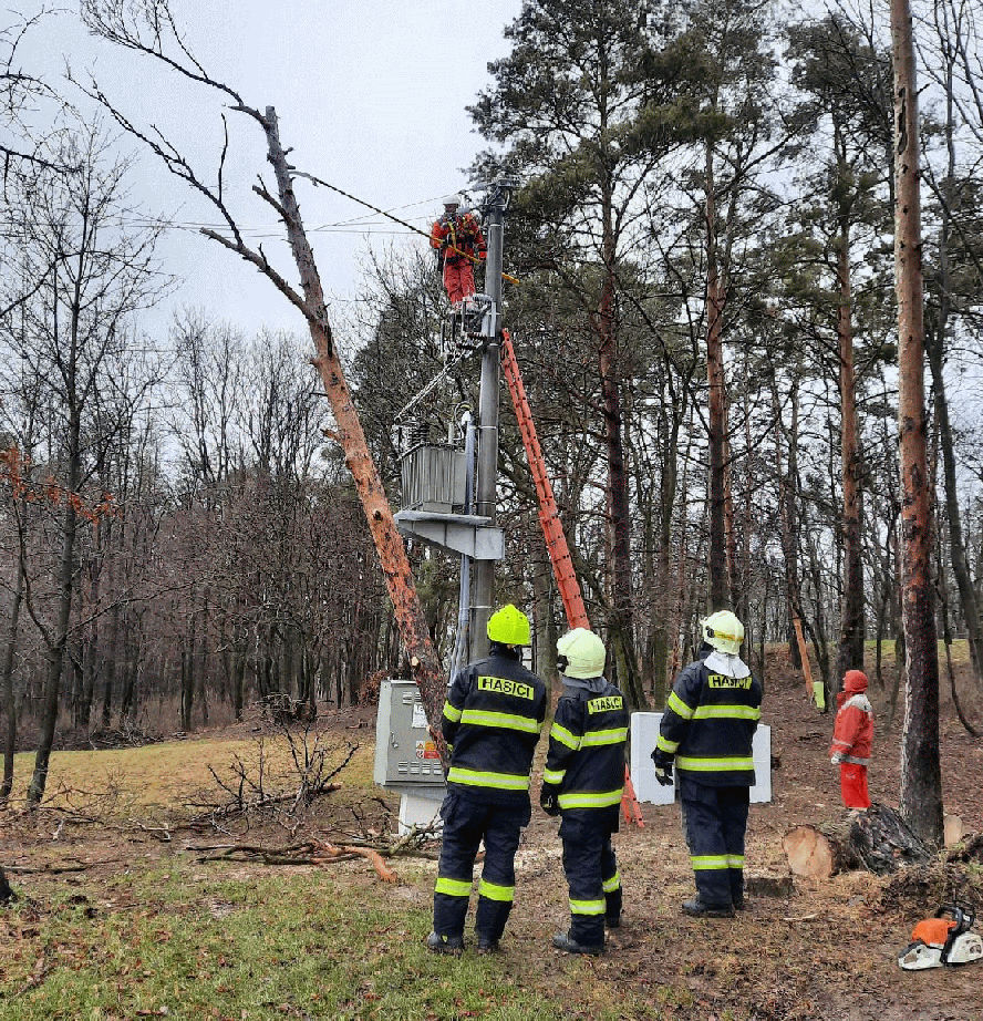 Pracovníci EG.D požádali hasiče o spolupráci na odstranění výpadku elektrického proudu pod kaplí na Antonínku v Blatnici. U trafa pod kaplí byla vyvrácená borovice, která spadla na elektrické vedení. Zásah trval více než hodinu a komplikoval jej silný vítr a možnost poškození trafa pádem stromu. „Děkuji klukům za perfektní práci v náročných podmínkách a doufám, že nikdo z nás neomarodí. Nyní už je vše v pořádku a doufám, že vítr nenapáchá další škody,“ uvedl velitel hasičů Petr Buzík.