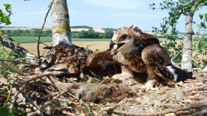 Pouze na jediném hnízdě na Brněnsku orli královští v roce 2022 vyvedli tři mláďata. Foto Hynek Matušík