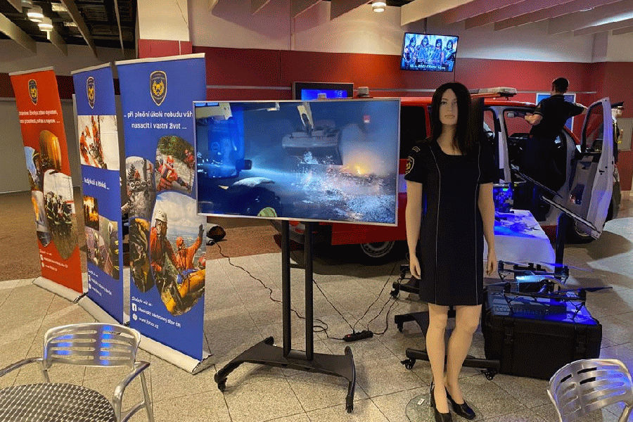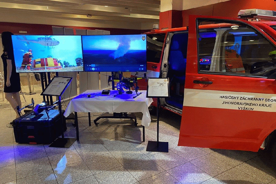 Návštěvníci pražské O2 arény si mohli prohlédnout dronový automobil Hasičské záchranné služby Jihomoravského kraje ze stanice Vyškov. Návštěvníci výstavy mohli vidět různé typy dronů a sledovat záběry, které byly pořízeny při hašení velkého ničivého požáru v Hřensku v Českém Švýcarsku.