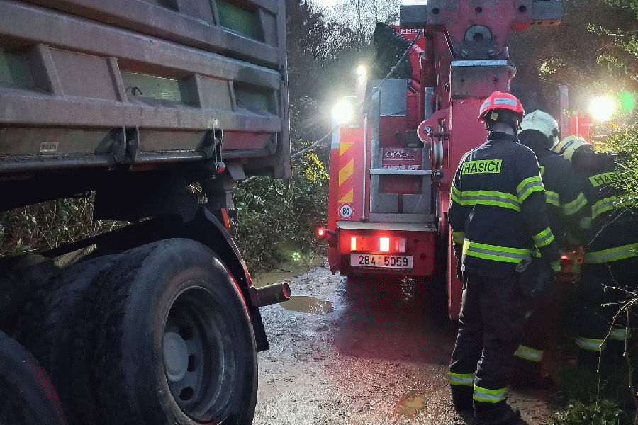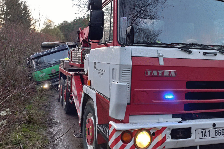V úterý sjela štěrkem naložená Tatra v obci Lelekovice na Brněnsku svým pravým bokem mimo komunikaci k potoku a hrozila převrácením. Jak popsal mluvčí hasičů Filip Venclovský, velitel zásahu povolal na místo dva vyprošťovací automobily. Za využití této techniky se hasičům podařilo nákladní vůz po osmé hodině večer vyprostit. K úniku provozních kapalin nedošlo. „Zásah komplikoval obtížný přístup pro těžkou techniku a deštivé počasí,“ doplnil Venclovský.