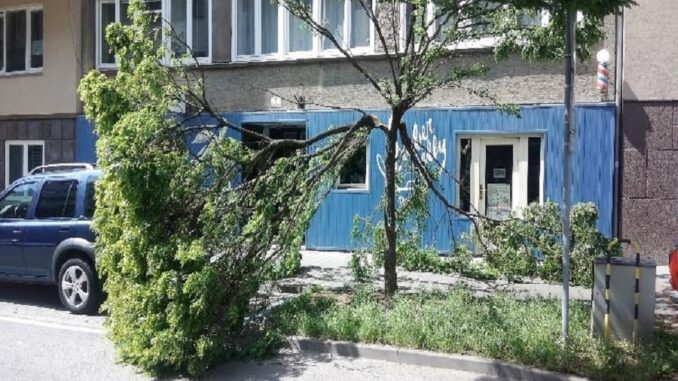 V Cihlářské ulici se odlomila část akátu, kdy u paty koruny praskla větev. Ta visela nad chodníkem, který zneprůchodnila, částečně zasahovala i do vozovky a vrcholky větví se dotýkaly zaparkovaného vozu. Naštěstí ho nepoškodily. Aby hasiči zabránili pádu větve, odřezali ji. Odbor životního prostředí nyní posoudí stav stromu.