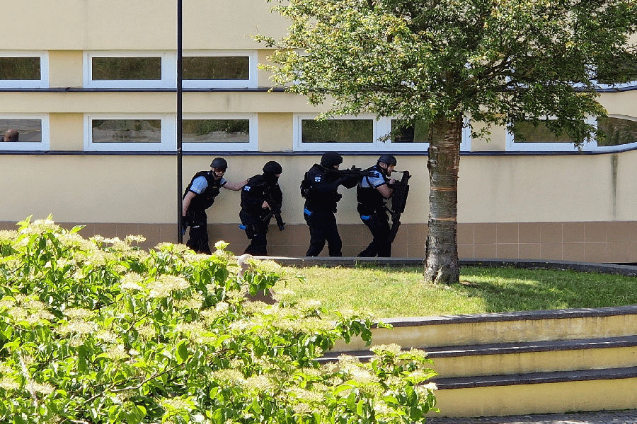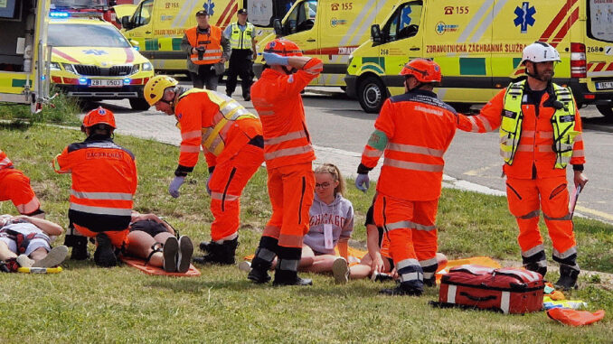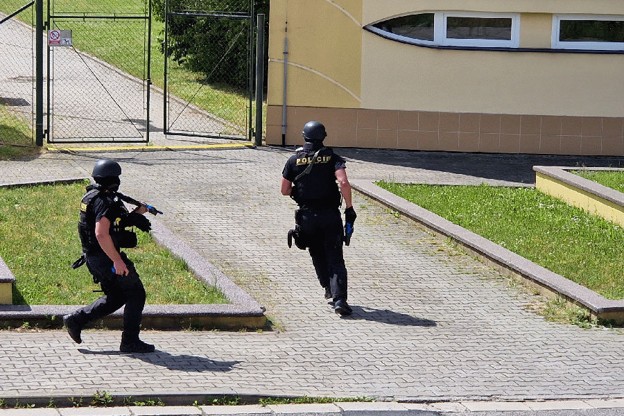 Útok střelce na střední škole v Blansku: Záchranáři s policisty a hasiči měli cvičení