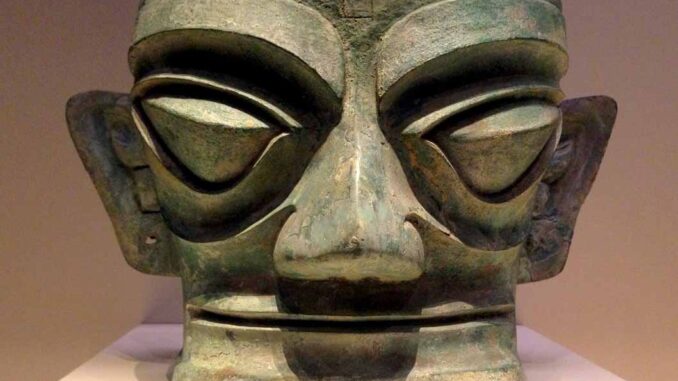 Téměř mimozemsky působí nesčetné bronzové masky kultury sangčindui. Cizorodé obličeje mají obrovité oči jako hmyz, některé navíc výrazně vystouplé oční bulvy. To jsou znaky, jaké se nevyskytují u artefaktů žádné jiné čínské kultury, kterou vědci znají. A hodně soch drží v ruce něco, co vypadá jako technické zařízení.