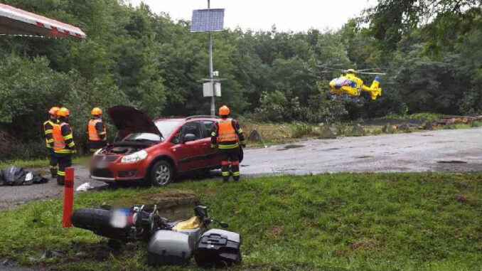 Na silnici I/54 mezi Slavkovem u Brna a Žarošicemi se ve středu odpoledne srazilo osobní auto s motorkářem. U nehody zasahovaly dvě hasičské jednotky, které poskytly první pomoc motorkáři. Ten utrpěl vážná zranění. „Na místo jsme vyslali vrtulník i sanitku. Těžce zraněného muže jsme ošetřili a následně ho letecky přepravili na urgentní příjem Fakultní nemocnice v Brně,“ uvedla mluvčí záchranářů Michaela Bothová. Hasiči zajistili místo nehody proti požáru a usměrňovali provoz na silnici. Místo nehody bylo průjezdné s omezením. „Příčina nehody zatím není jasná. U řidičky osobního auta byla zkouška na alkohol negativní, u motorkáře nebyla kvůli zraněním možná,“ konstatoval policejní mluvčí David Chaloupka.