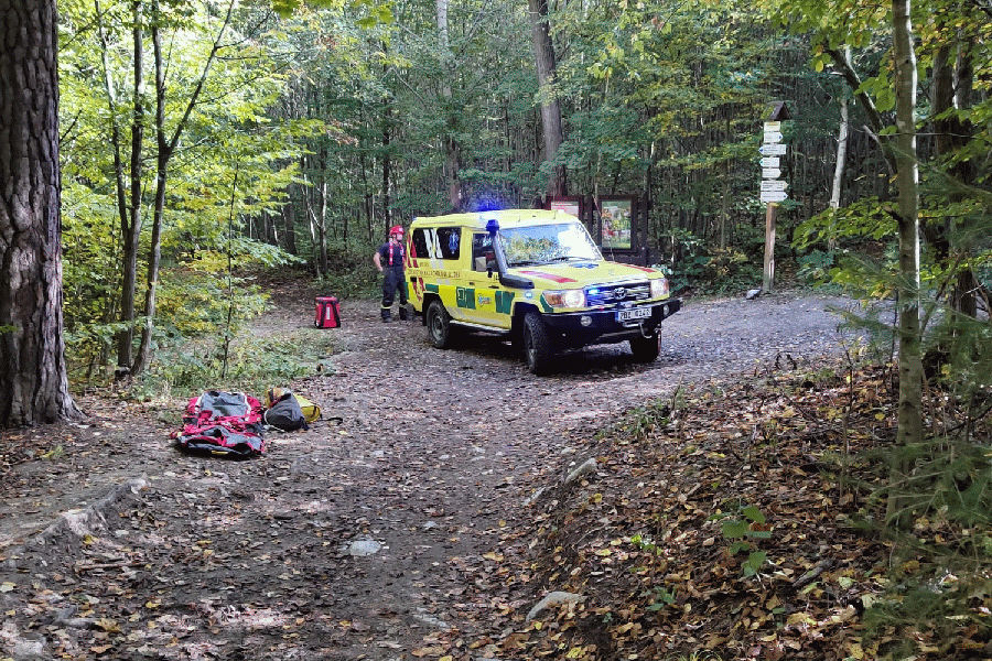BRNO-VENKOV – V neděli po poledni vyjeli hasiči k záchraně zraněného cyklisty, který havaroval v lesích nedaleko Ochozu u Brna. K jeho záchraně museli hasiči využít vrtulník letecké záchranné služby.