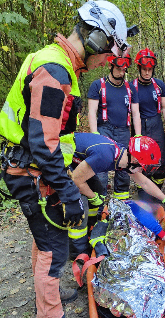 Cyklista při sjezdu s kopce havaroval na kamenité cestě v lesích nedaleko Ochozu u Brna. S ohledem na náročný terén a vzdálenost k nejbližší komunikaci hasiči muže transportovali za využití vrtulníku k sanitnímu vozu. Na nejbližší možné místo se spustil letecký záchranář, s pomocí hasičů naložili pacienta na nosítka a přemístili ho vrtulníkem k sanitce. Ta pacienta přepravila dál do nemocnice.