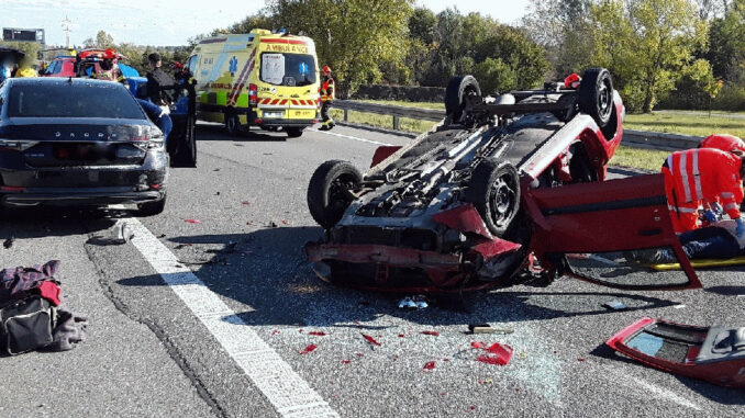 Hromadná nehoda pěti osobních aut na 226,5. kilometru dálnice D1 u Rousínova uzavřela provoz ve směru na Přerov. Na místě zasahovaly všechny složky záchranného systému. Policisté odkláněli dopravu přes exit 226 Rousínov. Kolona vozidel dosahovala až po 221. kilometr. Havarovalo pět aut, jedno se převrátilo na střechu. Přistál i vrtulník letecké záchranné služby. Jednoho zraněného hasiči vyprostili z havarovaného vozidla a předali do péče záchranářů. Před jednou hodinou odpoledne byla vozidla odstraněna do jednoho jízdního pruhu a provoz v místě nehody byl puštěný odstavným pruhem. Kolona se rozjížděla velmi pomalu.