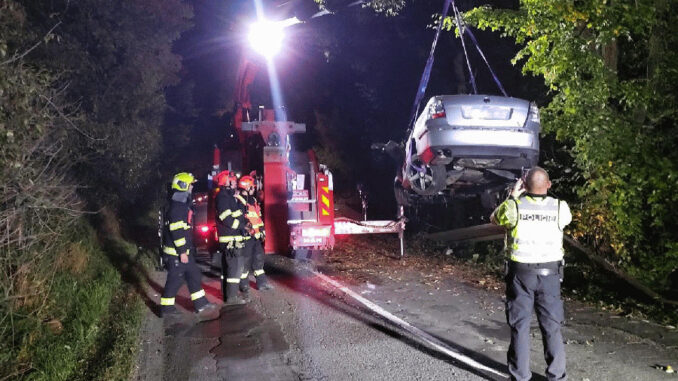 BRNO-VENKOV – V sobotu v sedm hodin večer se stala dopravní nehoda dvou osobních aut u Ivančic. Jedno zůstalo na vozovce s posádkou bez zranění. Druhé auto sjelo ze svahu nad řekou a uvnitř zůstaly tři zaklínění zranění lidé.