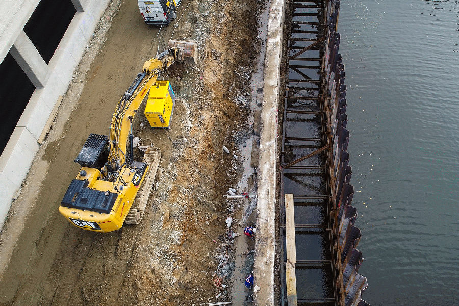 BRNO – Perlička ze stavby velkého městského okruhu v ulici Žabovřeská v Brně: Ředitelství silnic a dálnic Jihomoravského kraje povolalo potápěče, aby pomohli stavbařům vyčistit koryto řeky Svratky od původních historických neodklizených stavebních zbytků, které překážely při zarážení výpažnic.