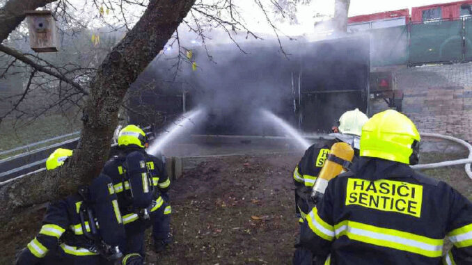 BRNO-VENKOV – V pátek po půl čtvrté odpoledne vyjížděly tři jednotky hasičů k požáru plechové garáže do obce Sentice na Tišnovsku. Požár vznikl od čtyřkolky, která byla zaparkována uvnitř garáže.