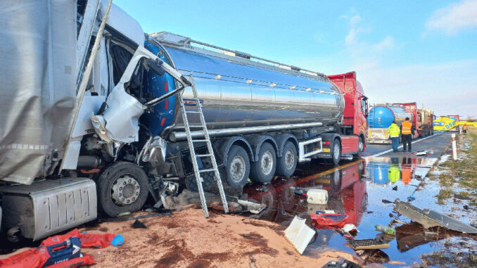 BRNO-VENKOV – Nehoda kamionu a cisterny uzavřela ve středu před polednem na 9. kilometru dálnici D2 u Opatovic ve směru na Brno. Tři lidé byli zraněni. Jednoho řidiče museli hasiči z kamionu vyprostit.