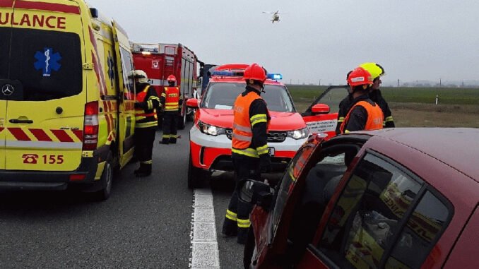 Hasiči a záchranáři vyjížděli ve čtvrtek před jedenáctou hodinou na 226. kilometr dálnice D1 u Vyškova ve směru na Brno, kde se stala dopravní nehoda nákladního a osobního auta. Vyprostili jednoho zraněného, přitom spolupracovali se zdravotnickou záchrannou službou při jeho ošetřování a pomohli ho transportovat do vrtulníku. Dále zajistili místo nehody a zabezpečili vozidla proti požáru.