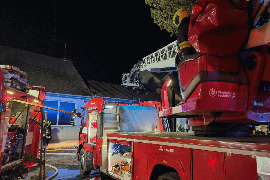 V neděli večer vznikl požár v objektu bývalé administrativní budovy a skladu v ulici Perunská v Hodoníně. Jak popsal mluvčí hasičů Petr Příkaský, do boje proti plamenům hasiči nasadili tři vodní proudy. Oheň se rozšířil ze skladu na střechu objektu. Z budovy hasiči vytáhli vozík, čtyřkolku a motocykl. Rozbrušovací pilou vytvořili ve střeše otvor, kterým půdní prostor odvětrali. Oheň dostali pod kontrolu v 22.46 hodin. Celý objekt odvětrali přetlakovou ventilací. Na průzkum hasiči použili i dron. Z budovy vynášeli ohněm zasažený materiál a ten následně dohašovali. Požár byl zcela uhašen v 23.50 hodin. „Vyšetřovatel vyčíslil předběžně škodu na 350 tisíc korun. Hasiči svým zásahem uchránili majetek ve výši 3 milionů korun. Příčina vzniku požáru je v šetření. Při požáru se nikdo nezranil,“ dodal Příkaský.