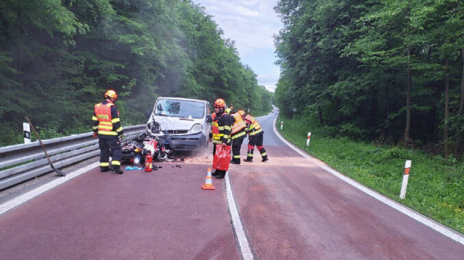 Ke střetu motocyklu a dodávky u obce Nížkovice na Vyškovsku spěchaly jednotky ze Žarošic a Slavkova. Motorkář skončil po nehodě za svodidly v příkopu. Hasiči mu poskytli první pomoc a ve spolupráci se záchranáři zajistili jeho transport do vrtulníku. Dále zabezpečili motocykl a dodávku proti vzniku požáru a zasypali uniklé provozní kapaliny. Silnice č. I/54 byla po dobu zásahu složek IZS uzavřena. Večer byli hasiči vysláni k vážné nehodě na Blanensku. „Dle informací z tísňové linky se za obcí Uhřice nacházel v poli osobní automobil se třemi zaklíněnými osobami. Za využití hydraulického vyprošťovacího zařízení jsme všechny tři osoby z vraku vozidla vyprostili. Ve spolupráci s posádkami záchranářů a vrtulníku jsme poskytovali zraněným první pomoc. Dále jsme na vozidle provedli protipožární opatření a uklidili vozovku,“ popsal mluvčí hasičů Filip Venclovský.