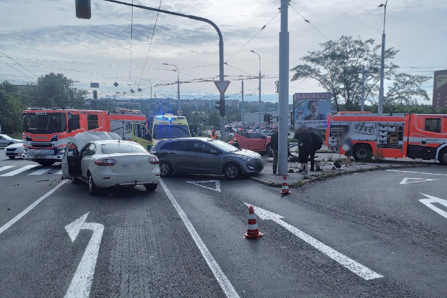 BRNO -Dopravní komplikace způsobila ve čtvrtek v osm hodin ráno na křižovatce ulic Jedovnická a Novolíšeňská v Brně dopravní nehoda tří aut. Došlo tam nejdříve ke střetu osobního automobilu se sloupem, v jehož důsledku havarovala další dvě auta.