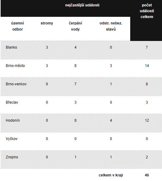 JIHOMORAVSKÝ KRAJ – Pondělní odpoledne zaměstnalo hasičské jednotky napříč krajem. Odstraňovali následky dešťů, blesků i dopravních nehod. Uvedené události jsou bez zranění.