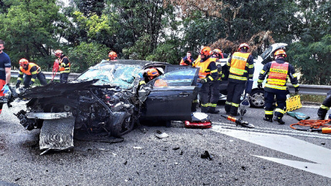 VYŠKOV – V úterý krátce před jedenáctou hodinou vyjely jednotky profesionálních hasičů ze stanic Slavkov u Brna, Bučovice, Pozořice a Vyškov k vážné dopravní nehodě na silnici první třídy číslo 50 poblíž Slavkova u Brna. Při střetu tří osobních automobilů a jedné dodávky se zranilo celkem osm osob. Zasahoval i vrtulník.