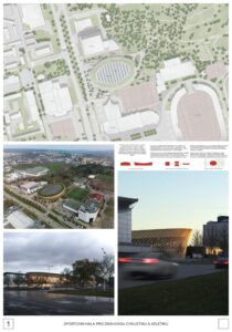 Jak zdůrazňují autoři, architekti Jiří Opočenský, Štěpán Valouch, Ondřej Králík a Norbert Lichý, území mezi ulicemi Sportovní a Drobného má příležitost stát se znovu sportovní akropolí města. Ulici Sportovní vnímají jako hranici mezi blokovou zástavbou a parkovým prostorem s jednotlivými stavbami a sportovišti. I z toho důvodu budovu velodromu pojali jako solitérní dům s výraznou vnější geometrií, který nevytváří uliční frontu, ale propojuje park s městskou strukturou.