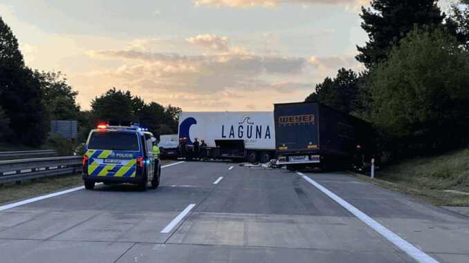 Vážná nehoda několika kamionů na dálnici D2: Dva těžce zraněné museli vyprostit hasiči