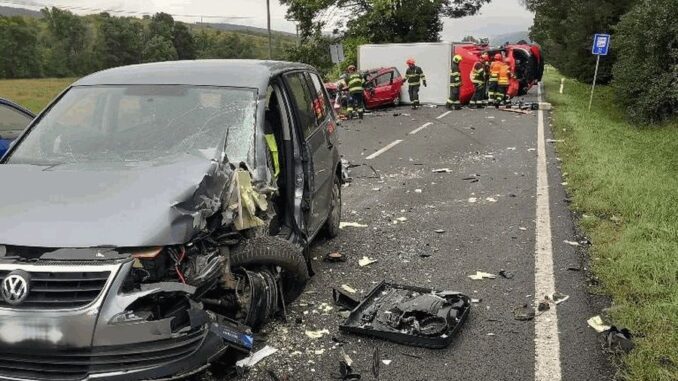 HODONÍN – U Louky na Hodonínsku zasahovali hasiči na silnici I/71 u vážné nehody nákladní dodávky a tří osobních aut. Silnice byla neprůjezdná. Hasiči museli vyprostit jednoho cestujícího z osobního vozu. Na místě byli tři zranění. Pro zraněnou ženu letěl vrtulník.