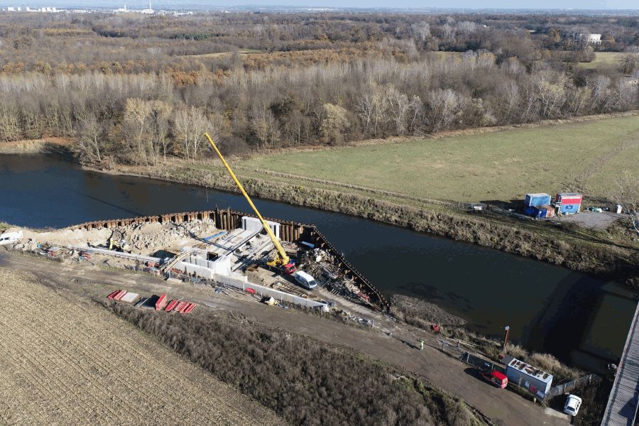 Práce na samotném jezu zpomalily zejména loňské vysoké stavy vody v Dyji, včetně těch povodňových. Aktuálně jsou dokončené betonáže jezového tělesa, středového a pravobřežního pilíře včetně migrační propusti. Vyrobené jsou i dvě technicky unikátní 23 metrů dlouhé klapky. Každá z nich váží 35 tun. První klapka se teď osazuje. Následně s ní bude možné samostatně manipulovat. Druhou klapku osadí na podzim příštího roku. Klapky budou po většinu roku sklopené u dna a za běžných průtoků je v řece ani nezaznamenáme. Během případného záměrného povodňování se klapky zvednou o 2,3 metry a s nimi i hladina řeky nad jezem. Do území Soutoku tak bude možné napustit za 10 až 12 dnů až 10 milionů metrů krychlových vody.