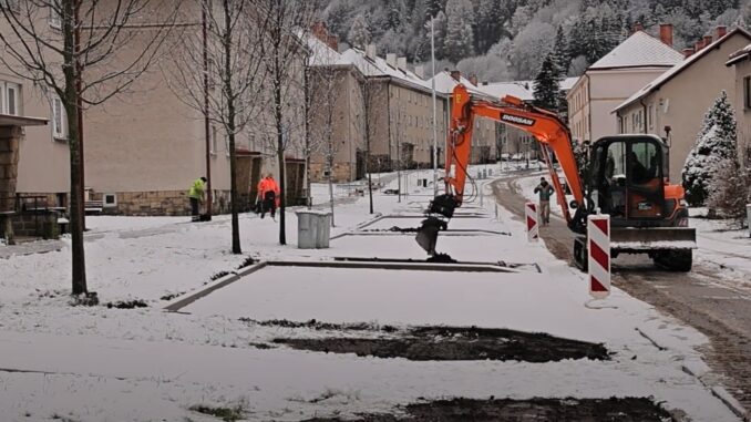 Ještě v prosinci tohoto roku by měly být ve městě Žacléř dokončeny tři investiční akce. První je nová parkovací plocha vedle městského úřadu, kde v současnosti zkomplikoval práci stavbařům sníh. Vzniknout by zde mělo jednadvacet parkovacích míst. Druhou akcí je parkoviště v Mírové ulici, kde by mělo být občanům k dispozici sedmačtyřicet míst pro automobily. A třetí akcí je parčík před penzionem Oliver, kde se čeká na dodání mobiliáře. Projekty si vyžádaly částku sedm a půl milionu korun, část nákladů pokryly dotace. „Při stavebních pracích na parkovišti u městského úřadu byla také objevena studna domu, který byl v minulosti zbourán. Situace bude na jaře řešena s památkáři, studnu chceme zviditelnit a hlavně zabezpečit,“ dodává místostarosta města Valentin Herman.