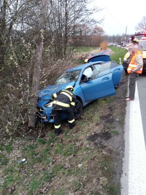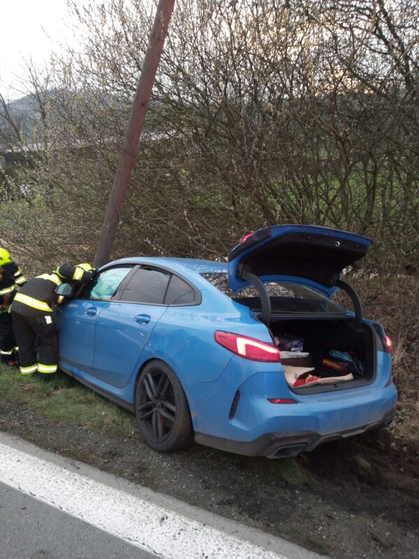 RYCHNOVSKO – K bouračce došlo tuto středu krátce před půl šestou odpolední v obci Záměl na silnici č. I/14. Technik, který dorazil na místo, musel nejprve zajistit odpojení a odstranění telefonních drátů, aby mohl být následně sloupek bezpečně skácen.