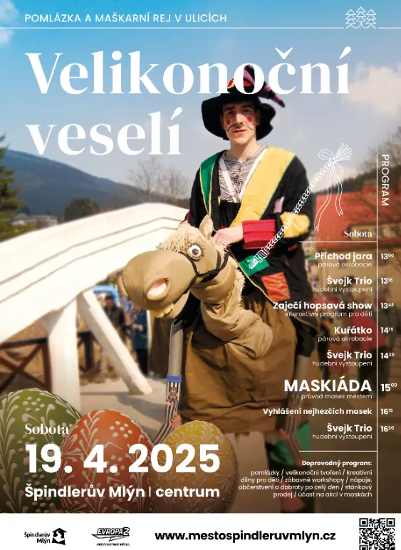 TRUTNOVSKO – Velikonoce ve Špindlerově Mlýně letos rozhodně nebudou jen o malovaných vejcích. V sobotu 19. dubna se centrum horského města promění v pestrý rej hudby, masek a velikonoční pohody. Pod názvem Velikonoční Veselí se chystá celodenní akce, která nadchne rodiny s dětmi, milovníky jarní atmosféry i všechny, kdo si chtějí užít sváteční víkend jinak než obvykle.