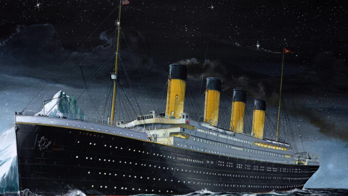 14. dubna 1912, krátce před půlnocí, plul tento monumentální parník rychlostí 21 uzlů Atlantickým oceánem a jeho cílem byl New York, kam mnoho chudých lidí mířilo za lepším životem. Nyní ale přišel zvrat – třikrát se ozval lodní zvonec a pak parník narazil na obrovskou ledovou kru. Jednotlivé prostory lodi začaly být zaplavovány a Titanic se začal potápět. Temná hladina chladných vod se nad ním definitivně uzavřela asi za 2 a půl hodiny.