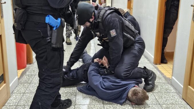VIDEO: Na střední škole v Liberci byl aktivní střelec. Podívejte se, jak taktické cvičení vypadalo