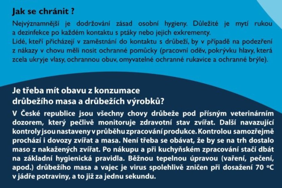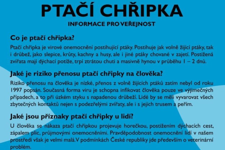 FRÝDEK – MÍSTEK – Virus ptačí chřipky se nevyhnul ani Moravskoslezskému kraji. První dvě ohniska zaznamenala Státní veterinární správa v Kunčicích pod Ondřejníkem a v Bartovicích na Ostravsku. V Chlebovicích a Lískovci, v městských částech Frýdku – Místku začala platit mimořádná opatření, která mají zamezit šíření nákazy.