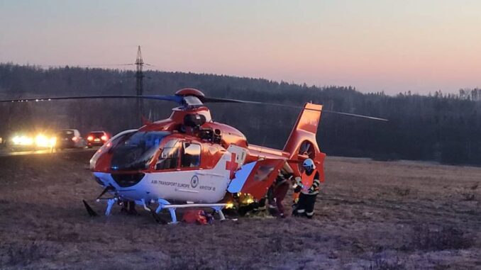 BRUNTÁLSKO – Vážná dopravní nehoda se stala v ranních hodinách na silnici, která spojuje města Opavu a Bruntál. Automobil se tam srazil s traktorem. Devatenáctiletou ženu, která v autě cestovala jako spolujezdkyně, musel do nemocnice přepravit vrtulník. Třiačtyřicetiletého řidiče automobilu převezla do nemocnice sanitka. Řidič traktoru ošetření nepotřeboval.