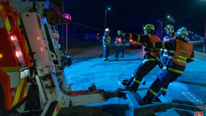 Poté, co velitel zásahu celou situaci zhodnotil, rozhodl se povolat těžkou vyprošťovací techniku, která kamion zabezpečila proti převrácení pomocí lanových navijáků. O upevnění navijáků se postaraly speciály ze stanic Ostrava-Zábřeh, Frýdek-Místek a Havířov.