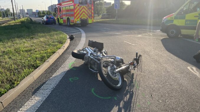 Podle mluvčí policie Evy Michalíkové se šestačtyřicetiletá žena, která řídila tramvaj měla pokračovat v jízdě navzdory světelné signalizaci pro tramvaje, která ukazovala Stůj, dej přednost v jízdě. V ten okamžik projížděl po silnici osmačtyřicetiletý motorkář, který jel na zelenou a se soupravou se srazili. Muž na motorce utrpěl zranění.