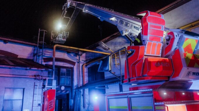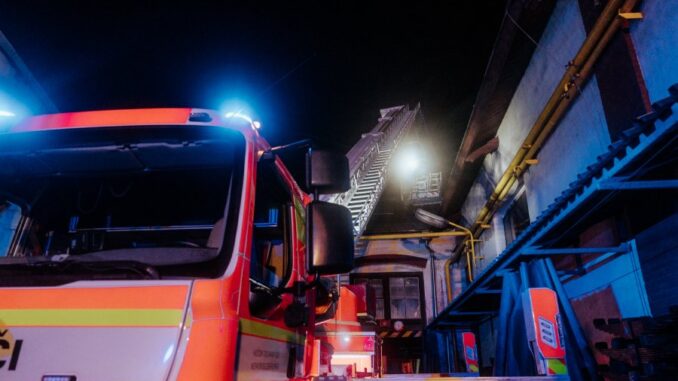 KRNOV – K požáru haly vyjížděly ve večerních hodinách hasičské jednotky do Krnova. Bylo nutné vyhlásit druhý stupeň poplachu, při hašení budovy hasiči museli rozebrat část střechy, naštěstí se nikdo nezranil.