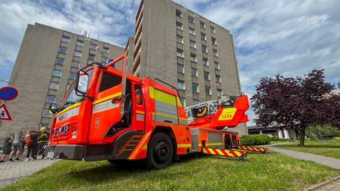 PŘÍBOR – Plné ruce s likvidací požáru a záchrannou lidí měly složky Integrovaného záchranného systému v odpoledních hodinách v Příboře na Novojičínsku. Hořet začalo v bytě sedmipodlažního domu.