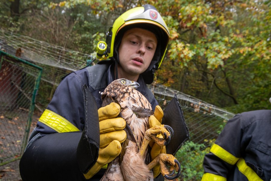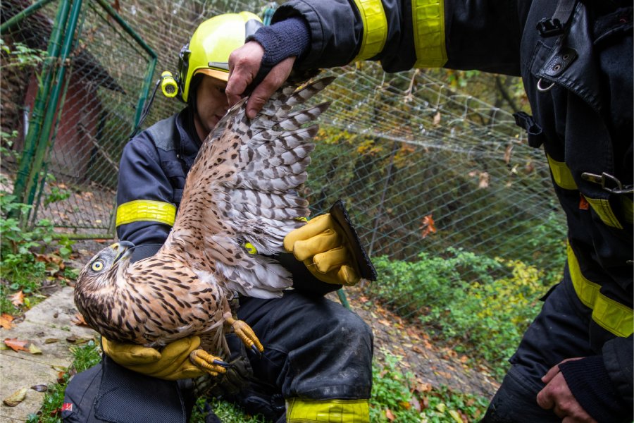 OSTRAVA – Záchranu zvířecího života si na své konto připsala jednotka hasičů z Přívozu, která je na tyto zásahy speciálně vybavená. V síti, která kryla venkovní výběh pro drůbež uvízlo mládě jestřába a jednotka jej musela z pasti dostat.