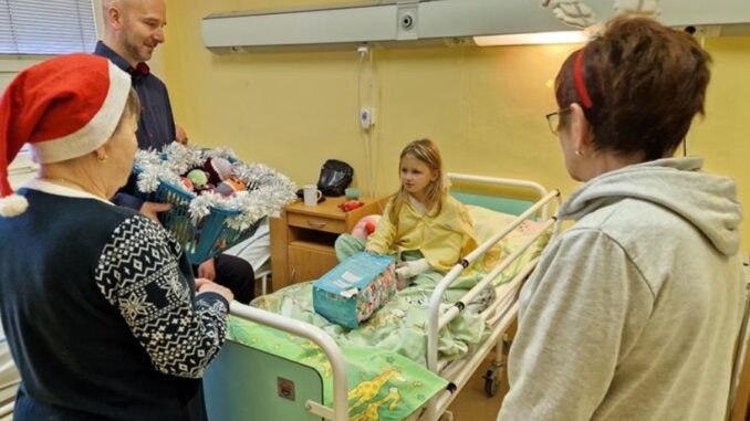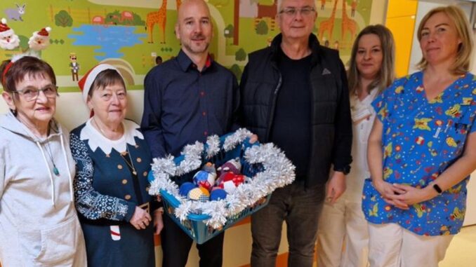 Na dětské oddělení zavítaly v  pondělí 9. prosince zástupkyně Klubu šikovných rukou společně s vedoucím oddělení sociální pomoci Davidem Životským. Spolu s ředitelem Nemocnice Třinec Jiřím Veverkou, který se k nim připojil, všichni popřáli dětem brzké uzdravení, spoustu radosti a síly. „Vidět úsměvy na tvářích dětí je pro nás ta největší odměna. Naše členky to motivuje k další tvorbě, protože vědí, že jejich práce má smysl,“ uvedly členky klubu Karla Balcarová a Anna Pilchová. Tentokrát se seniorky rozhodly obdarovat děti veselými ručně háčkovanými zvířátky.