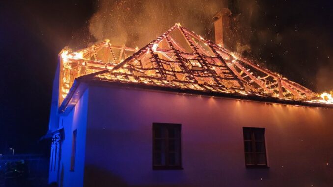 LICHNOV – Noční požár v Lichnově na Novojičínsku zaměstnal šest jednotek hasičů, hořela střecha a podkroví fary přilehlého kostela. Při zásahu utrpěl lehké zranění dobrovolný hasič.