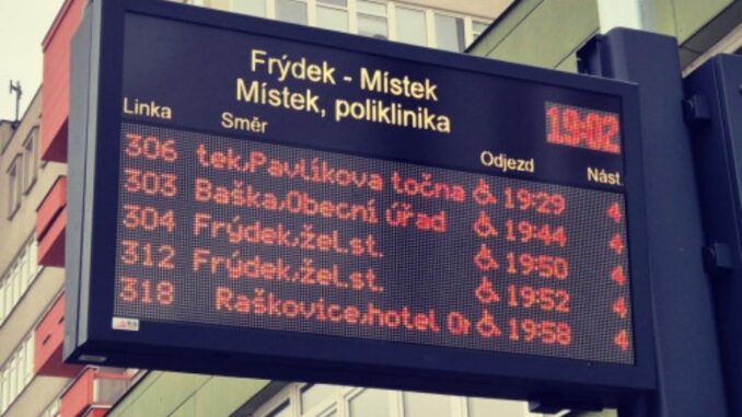 FRÝDEK-MÍSTEK – Cestování MHD by se pro cestující ve městě mohlo stát ještě komfortnějším. Do systému, který informuje ve městě občany o příjezdech a odjezdech autobusů,  přibydou 3 velké LED panely a 6 e-paper panelů. S dalším rozšířením naváže dopravce. Frýdek-Místek tak bude patřit v Moravskoslezském kraji mezi města s nejsilnější informačně-dopravní digitální síť.