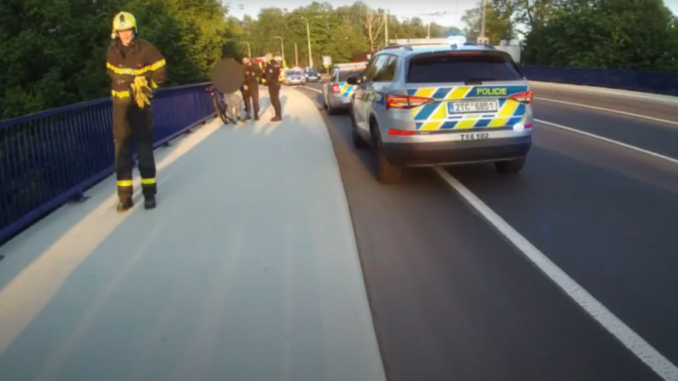 V podvečerních hodinách v pondělí 12.května přijali policisté oznámení na tísňovou linku 158 o pádu muže na podestu mostu, který je nad železniční tratí v ulici Michálkovická ve Slezské Ostravě. Na místo vyrazili ostravští policisté z obvodního oddělení Slezská Ostrava, a také prvosledové hlídky z oddělení hlídkové služby Ostrava. „Po příjezdu našli ležet zraněného sedmatřicetiletého muže na servisní platformě mostu, zhruba dva metry pod úrovní vozovky. Okamžitě sestoupili na platformu vedoucí nad železniční tratí a začali muži poskytovat první pomoc,“ sdělil mluvčí policie Jan Segsulka.