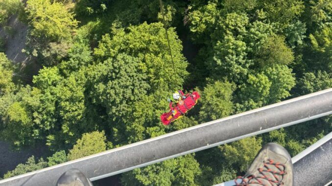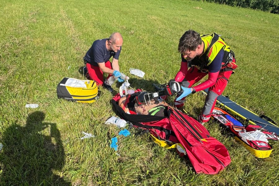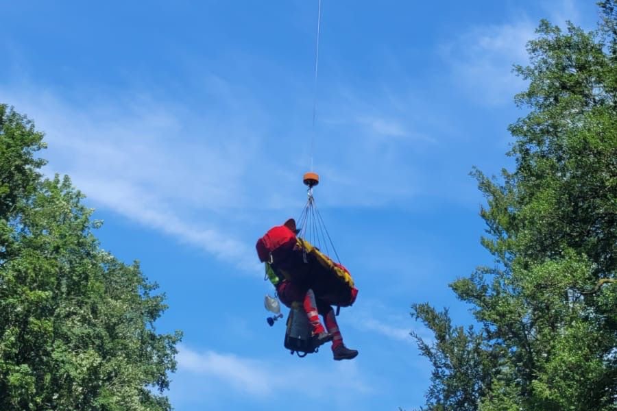 Lékaře na místo zásahu vysadil vrtulník pomocí palubního jeřábu. „Po základním ošetření, tedy zajištění periferní žilní linky, podání léků proti bolesti a infuzních roztoků, oxygenoterapii a potřebné imobilizaci krční páteře a dolních končetin, které měl po pádu v patologickém postavení, kolegové muže připravili na vyzdvihnutí v podvěsu vrtulníku, a ten jej dopravil na místo mezipřistání,“ doplnil Humpl. Následně mu letečtí záchranáři poskytli další potřebnou péči – podali plnou krev a další potřebné léky, lékař zajistil dýchací cesty intubací a napojil muže na přístrojem řízenou ventilaci. Pětašedesátiletého muže pak vrtulník transportoval do Fakultní nemocnice Ostrava. Na urgentním příjmu si jej zdravotníci převzali v kritickém stavu.