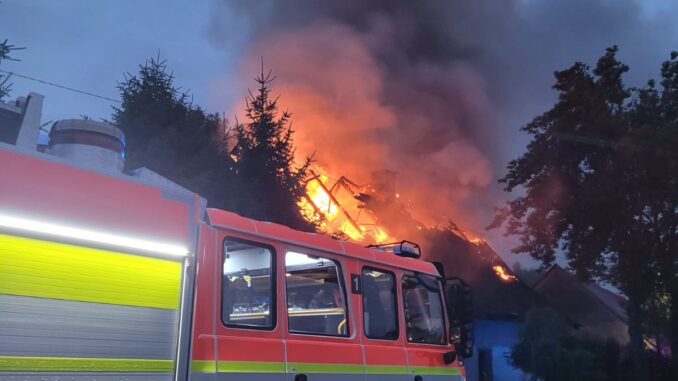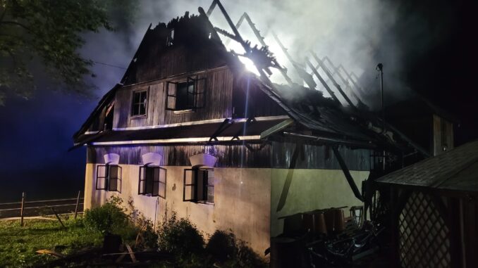 Operační středisko hasičů přijalo informaci o požáru rodinného domu v neděli 27. července krátce po osmé hodině večerní. „Hustý, černý kouř valící se ze střechy domu byl viditelný ze vzdálenosti několika desítek metrů. Hasiči v dýchací technice okamžitě po příjezdu na místo zahájili hasební práce. Pro boj s požárem použili pět vodních proudů, a to jak z vnitřní, tak z vnější strany domu. K zásahu využili i výškovou techniku,“ sdělila mluvčí hasičů Kamila Langerová. Požár se podařilo lokalizovat během dvou hodin, jeho následná likvidace trvala další tři hodiny. Hasiči z hořícího domu vynesli nejen pět tlakových lahví, které ochlazovali, ale také osobní věci jeho obyvatel. Ti opustili prostory domu ještě před příjezdem jednotek na místo.